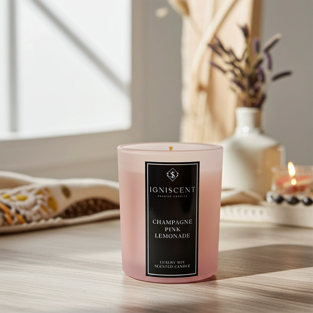 Laat je zintuigen bruisen met de Klassieke Vegan Geurkaars Champagne & Pink Lemonade van IGNISCENT. Deze elegante kaars combineert de verleidelijke geur van gekoelde Franse champagne met zoete framboos, frisse citroen en een vleugje rozenwater. Een sprankelende geurbeleving die doet denken aan een zomerse toast vol vrolijkheid en verfijning.