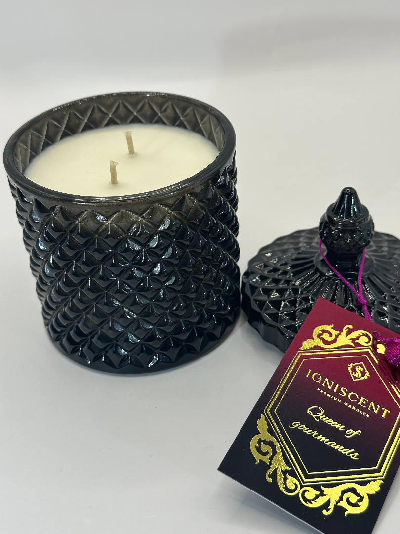 Laat je huis vullen met de decadente geur van Queen of Goodies een luxe kaars die elegantie, warmte en zoet genot combineert